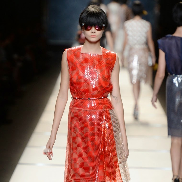 The laser-cut organza that prevailed on Fendi’s runway was layered in a fluid way that instilled such lightness in the elegance and opulence a Fendi woman is known for. With each layer getting subtly lighter in shade than the previous, it was as if waterfalls were on the designers’ minds – hence the fluidity in the clothes. Other noteworthy details: the graphically cut leather and the fur flattened on the garments in a geometric way